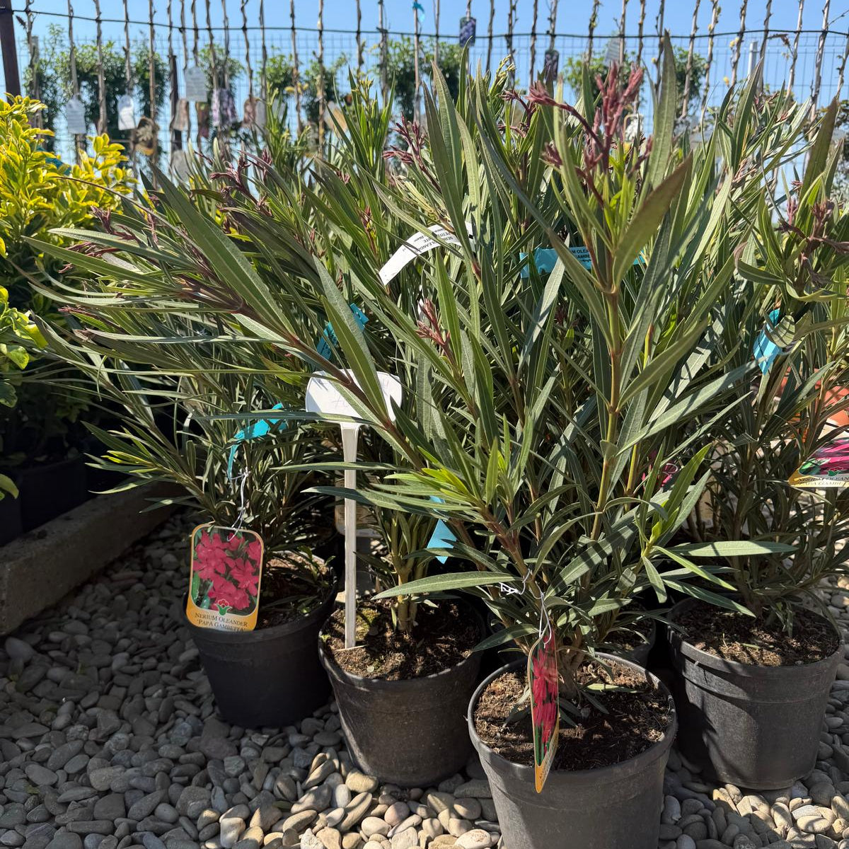 - Leandru rosu în ghiveci de 3 L, cu înălțimea de aproximativ 60 cm, este o plantă decorativă cu flori roz intens, ideale pentru a aduce culoare teraselor, grădinilor sau balcoanelor.